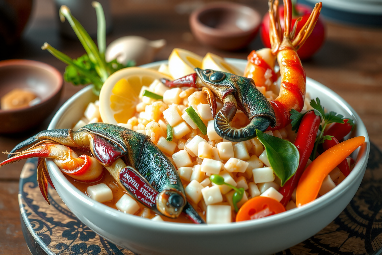 – 1 libra de marisco variado, como gambas, mejillones y langosta
