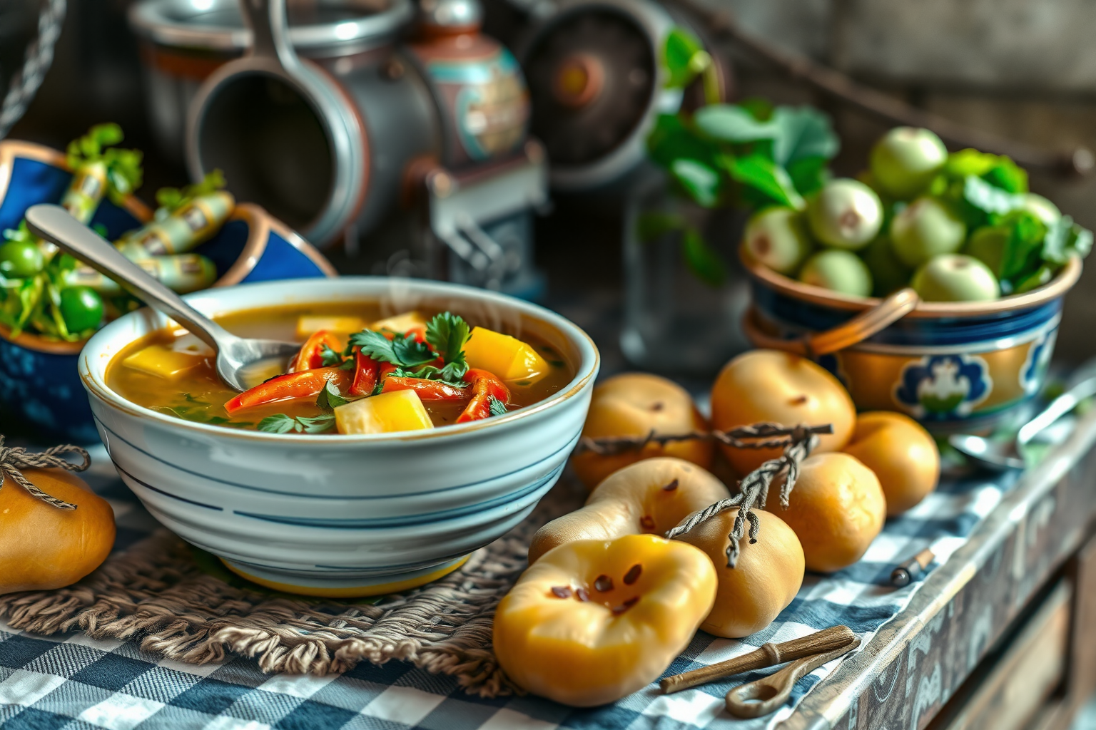 Caldo: El caldo que se utiliza en el Ajiaco Bogotano suele hacerse con cebollas, ajo, cilantro y verduras. La base del caldo puede hacerse con caldo de pollo o de ternera, y es esencial para un sabor óptimo.